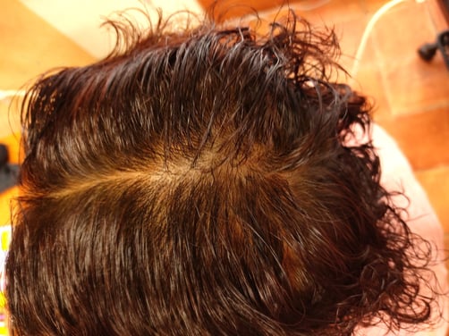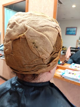 タオルを外してみますと、寝ている間に襟足に塗布をしたHQヘナが上にずれてしまっていました