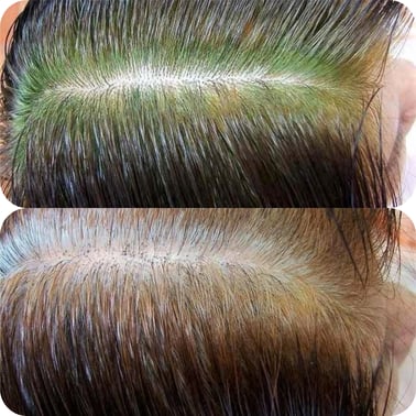 ヘナの後で紫紺色を使う場合は、下地のヘナをシッカリ濃く染めておくのも大切ですが、