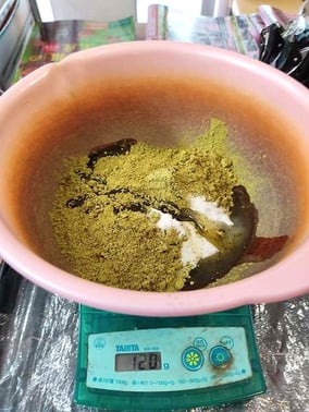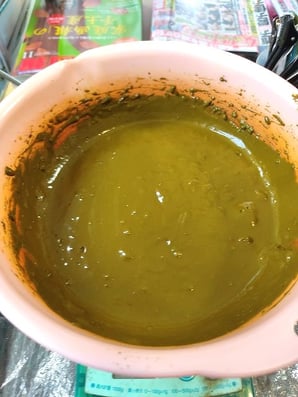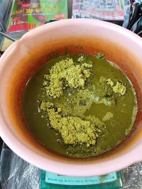 60℃のお湯を、HQヘナに対して3倍以下の量を加えて