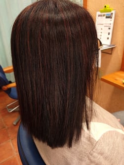 写真よりも肉眼の方が、黒髪と白髪の染まりの違いが毛先に行くほど分からないのですが、写真だと違いが際立ってしまいますが、ご本人は